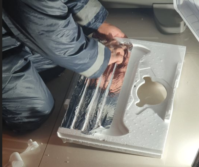 Solución: cinta de aluminio para que no se siga rompiendo la espuma aislante y tapando el desagüe.